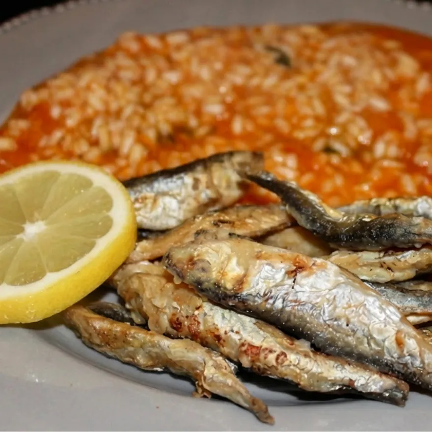 O intenso sabor da petinga com o cremoso arroz de feijão.
